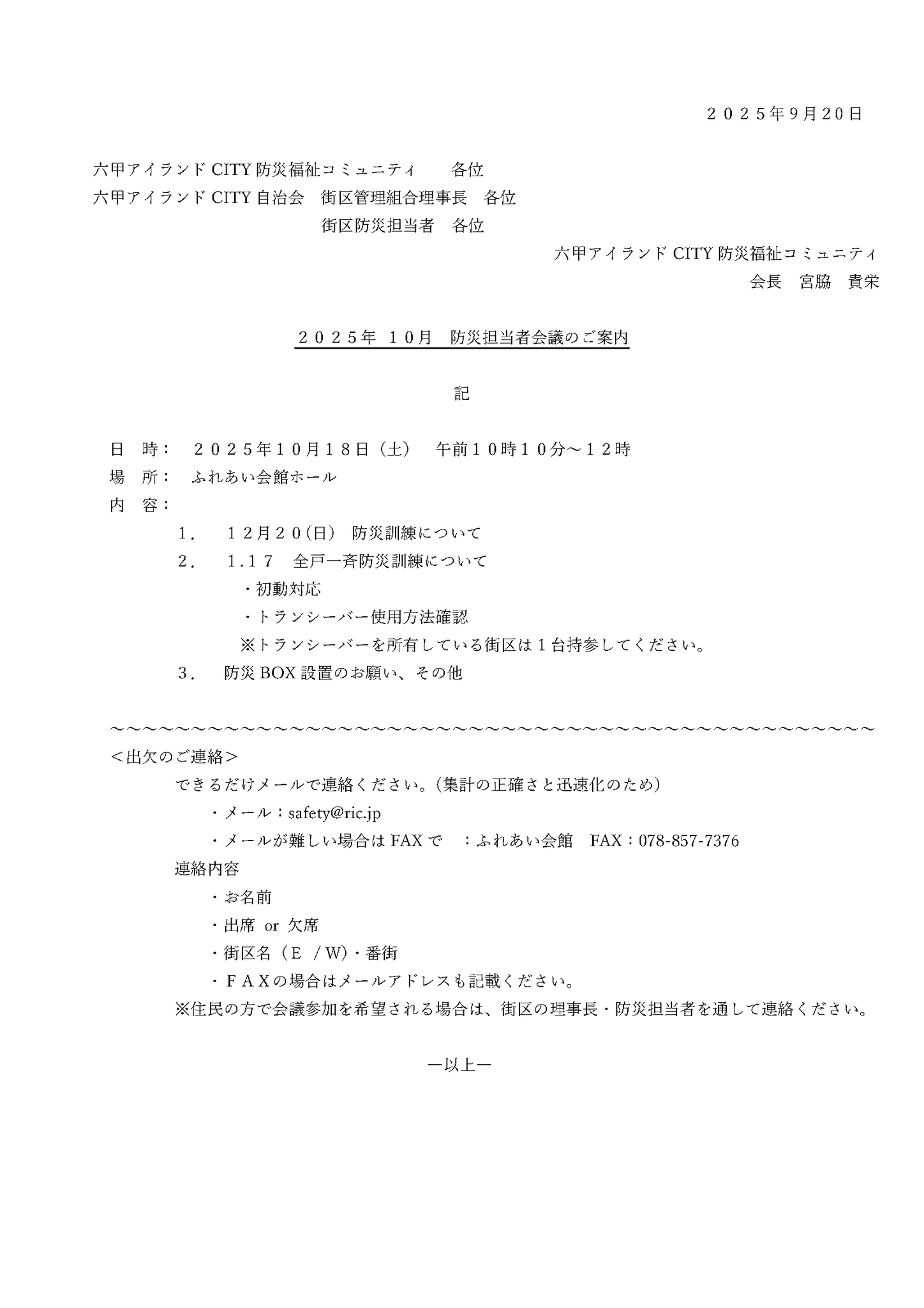 ▼⑥★2025年度_第3回_R7.10_防災担当者会議開催のご案内20250920_rev1